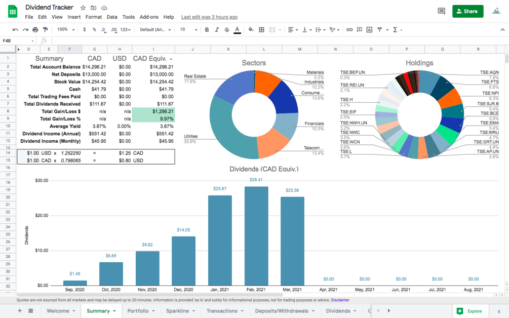 This is the Dividend Tracker! It's a fully functioning Google Sheet that you can use to track your dividend investing portfolio.