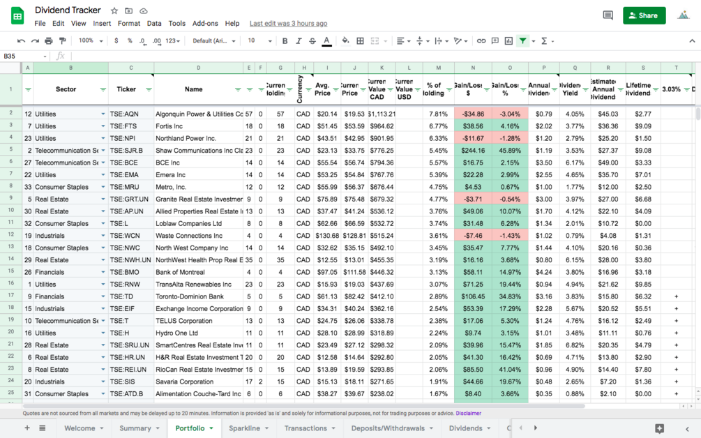 This is the Dividend Tracker! It's a fully functioning Google Sheet that you can use to track your dividend investing portfolio.